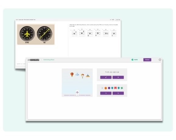 The pilot aptitude consists of several mini-tests that assess skills like multitasking, hand-to-eye coordination, spatial awareness, monitoring abilities, complex control, numerical and verbal reasoning, and inductive and deductive thinking.