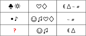 Columns: In eachcolumn, the symbols in one of the cells are a combination of the symbols from the other cells so that:
