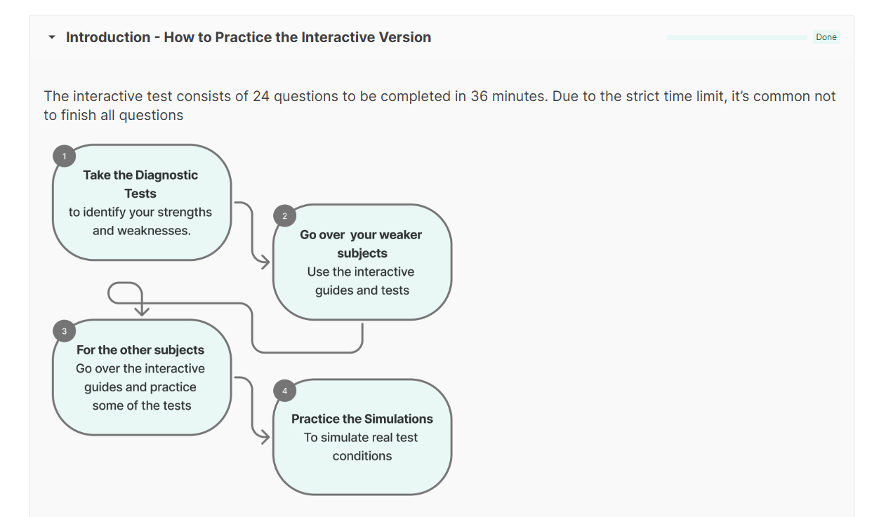 You will have instant access to your PrepPack, which includes all your practice tests. You can start practicing immediately, learning from detailed explanations and guides, while tracking your performance with accurate, tailored questions to help you understand the correct approach to solving your assessment.