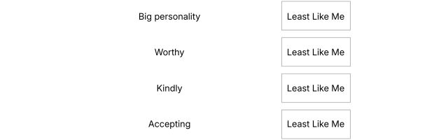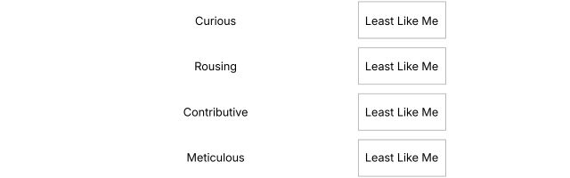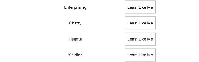 Note: The attribute you selected as 'Most Like Me' cannot be selected again